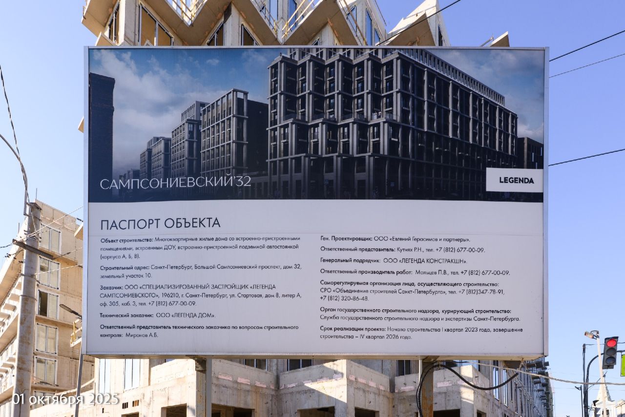 Ход строительства ЖК «Сампсониевский 32» от 1 октября 2025
