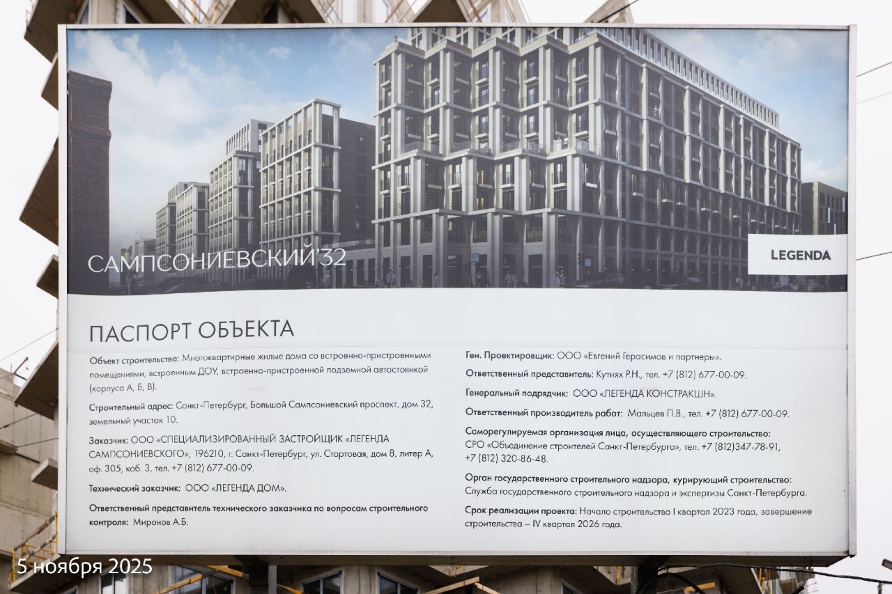 Ход строительства ЖК «Сампсониевский 32» от 1 ноября 2025