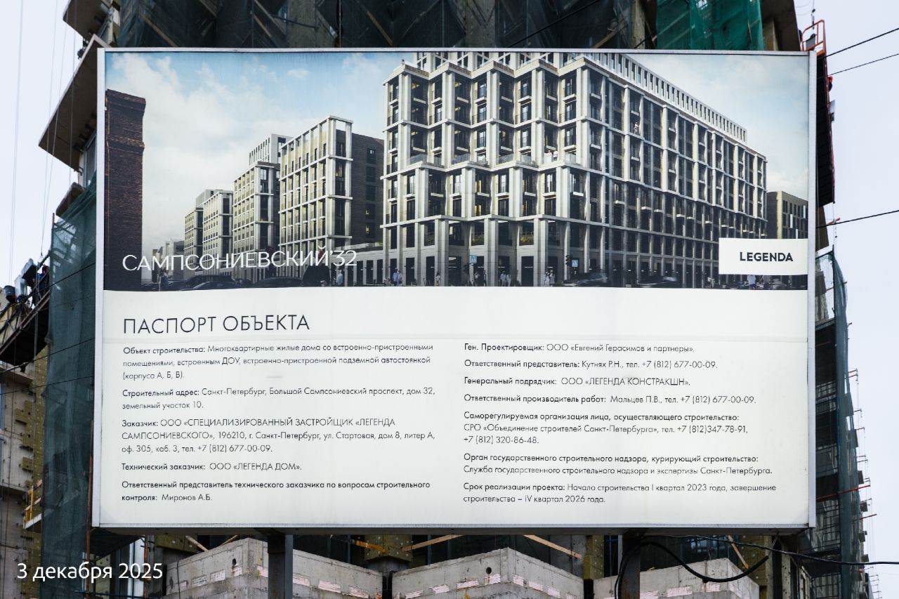 Ход строительства ЖК «Сампсониевский 32» от 1 декабря 2025
